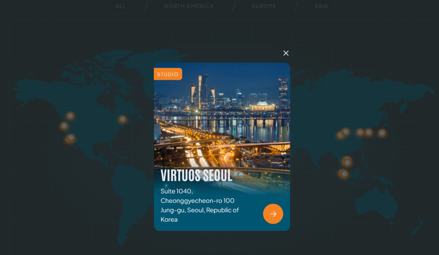 隨著近年韓國遊戲在全球聲勢大漲,Virtuos 也在首爾設立了據點。Virtuos Korea 總經理 Seung Hwan Yoon (Sean) 說明:「韓國分部是一個小而精的核心團隊。」 他說明韓國團隊不僅是韓國客戶的窗口,也負責協調海外的工作室,提供美術、工程等支援。