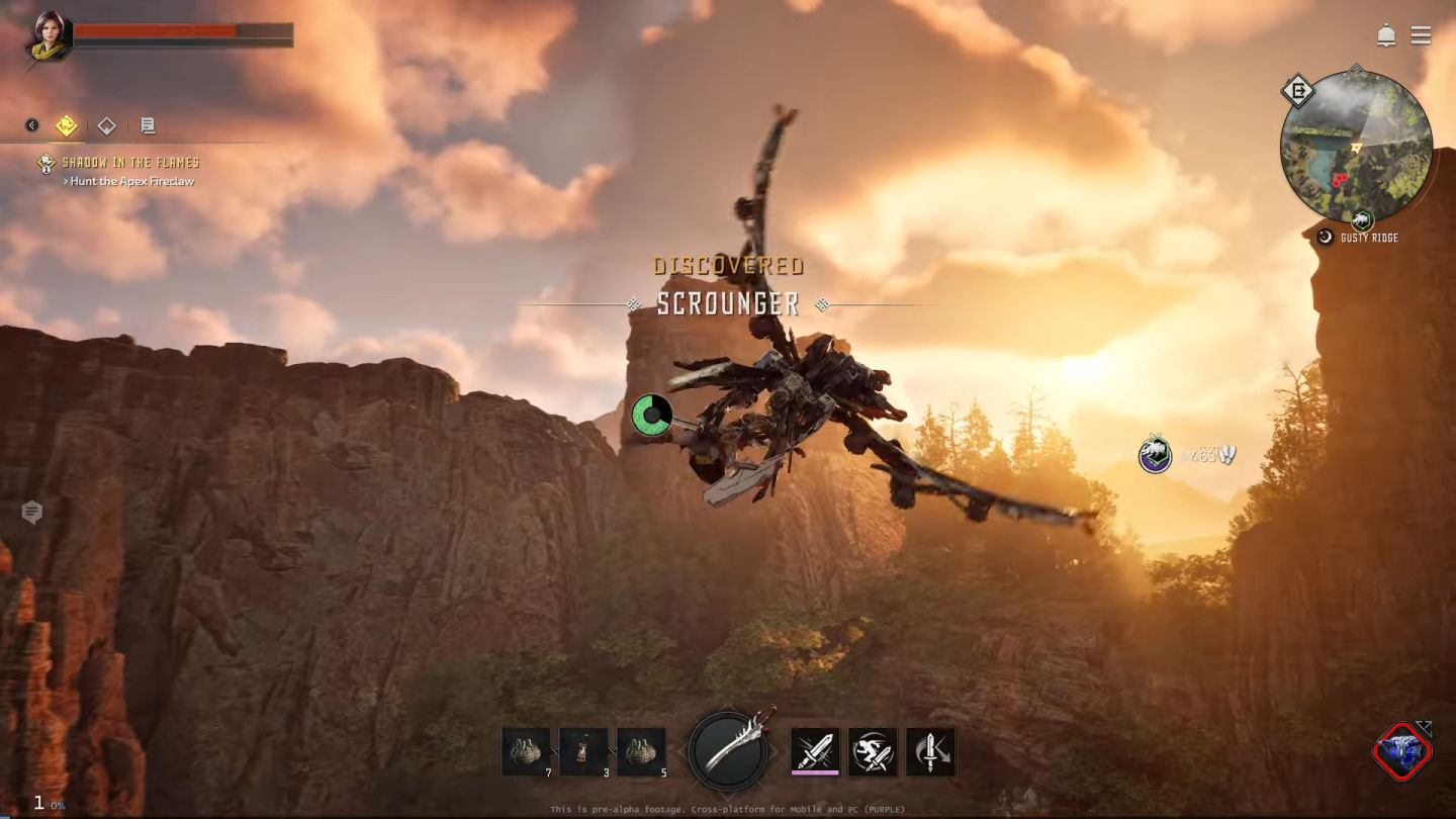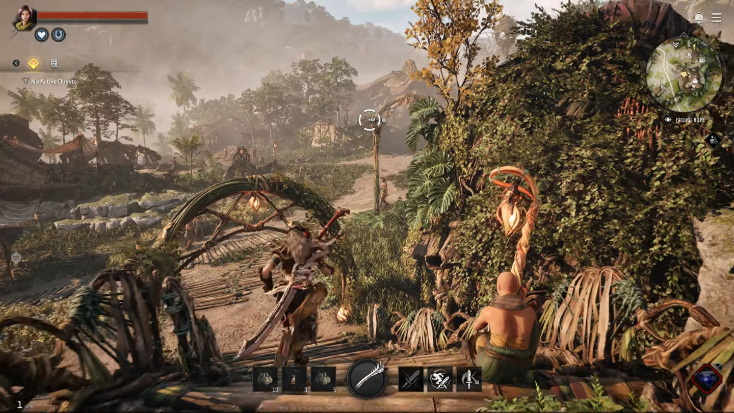 李星九:《地平線》原作是一款使用弓箭佔比幾乎 80% 到 90% 的遊戲。但是只用弓和矛來套用在 MMORPG 上,在概念上不太合理了。所以我們初期在和索尼(Guerrilla)進行企劃協商時,將比重定為 50% 的近距離戰鬥與 50% 的遠距離戰鬥。除了像矛和弓之外,我們還製作了近距離六種、遠距離六種武器。除預告片中看到的大劍、雙劍,遠距離武器不只有弓,會有像是「弩弓」之類獨特的武器。