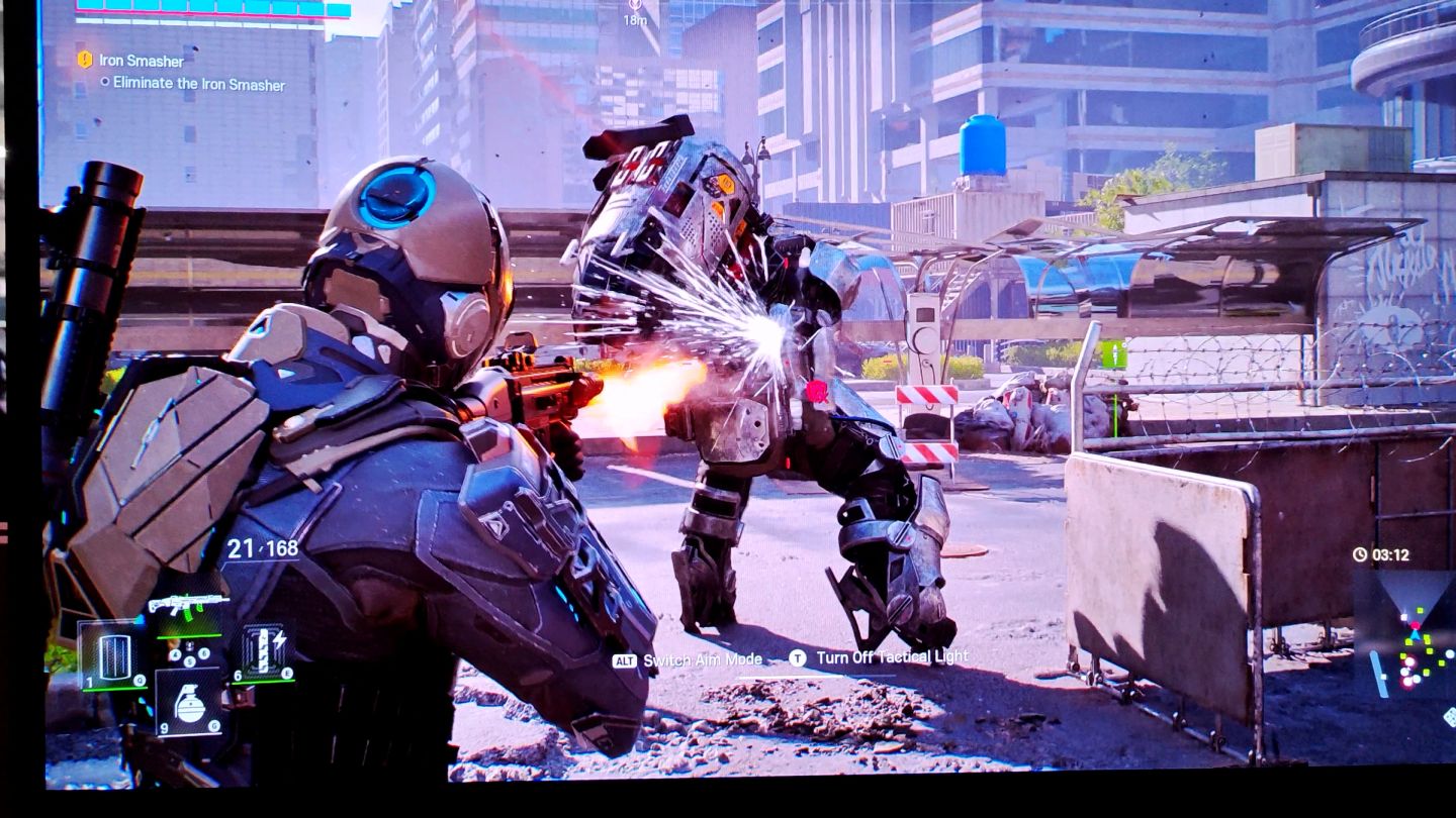 在 30 分鐘的試玩時間內。官方開放 2 星難度的「Wolf of Squad」與 3 星「Chamber 7」任務,「SEVEN」裝備著特殊戰術裝甲的樣貌,讓人想起「Crysis 末日之戰」的角色設計,而這套裝甲賦予玩家角色能夠跳躍、衝刺閃避,以及自動回覆裝甲值的能力。