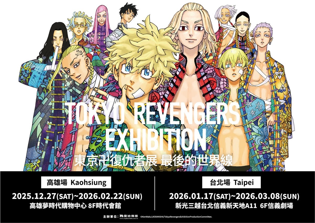 眾多東卍迷引頸期盼的《TOKYO卍REVENGERS EXHIBITION 東京卍復仇者展 最後的世界線》台灣首展,即將於 12/27 在高雄夢時代購物中心開展,並於 2026/1/17 於新光三越台北信義新天地A11 舉行第二場展覽。