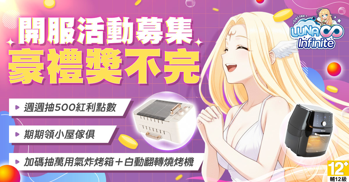 為感謝玩家支持,《LUNA Infinite》開服同步啟動「OB 三大慶典活動」,送出超過 10 萬元家電好禮:
