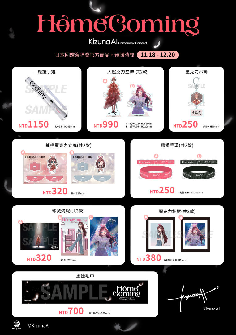 除了影城應援上映外,本次活動也同步推出來自日本《Homecoming》現場的限定官方週邊商品,包含應援手燈、應援手環、應援毛巾、壓克力立牌、紀念海報等多項人氣商品。將透過萊爾富「萊購物」平台搶先開放預購中,讓粉絲不必出國也能收藏日本原版演唱會紀念品,數量有限,喜愛絆愛的粉絲絕對不能錯過。
