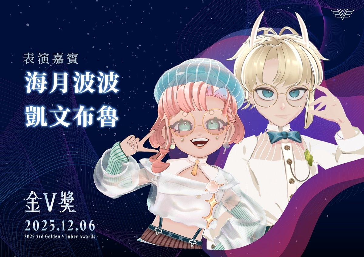 公共電視主辦之 2025 年第三屆「金V獎」今(18)日公布頒獎嘉賓、主題曲與第一波表演嘉賓情報。頒獎嘉賓秉持往年傳承的概念,邀請第二屆金V獎得主全數回歸,特製隊長(維碼科技)、雪迎、DIKA豚足姬、絆Kizuna(半點)、尼皮、晚晚配音中、奈斯糖將重新在舞台上聚首,把榮耀接棒給下一屆得獎者。