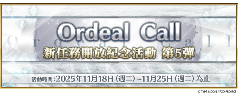 為紀念「Ordeal Call」新任務的開放,即日起至 11 月 25 日(二)12:59 期間,將限時舉辦「Ordeal Call:新任務開放紀念活動 第5彈」。