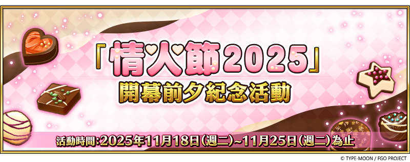 為了配合預定於 11 月下旬舉辦的限時活動「情人節 2025」,即日起至 11 月 25 日(二)12:59 期間,也將舉辦限時活動『「情人節 2025」開幕前夕紀念活動』。