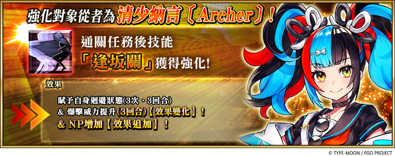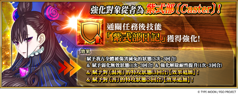 即日起,迦勒底之門中將常駐追加「★5(SSR)清少納言〔Archer〕」、「★5(SSR)紫式部〔Caster〕」的特別任務「從者強化任務」,通關任務後,不僅技能將獲得強化,還能得到聖晶石作為獎勵。