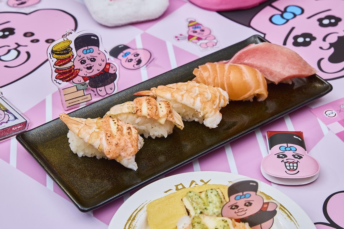 粉嫩登場的餐點結合角色造型元素,讓粉絲在享用美味壽司的同時,也能沉浸於療癒可愛的粉紅派對氛圍中。