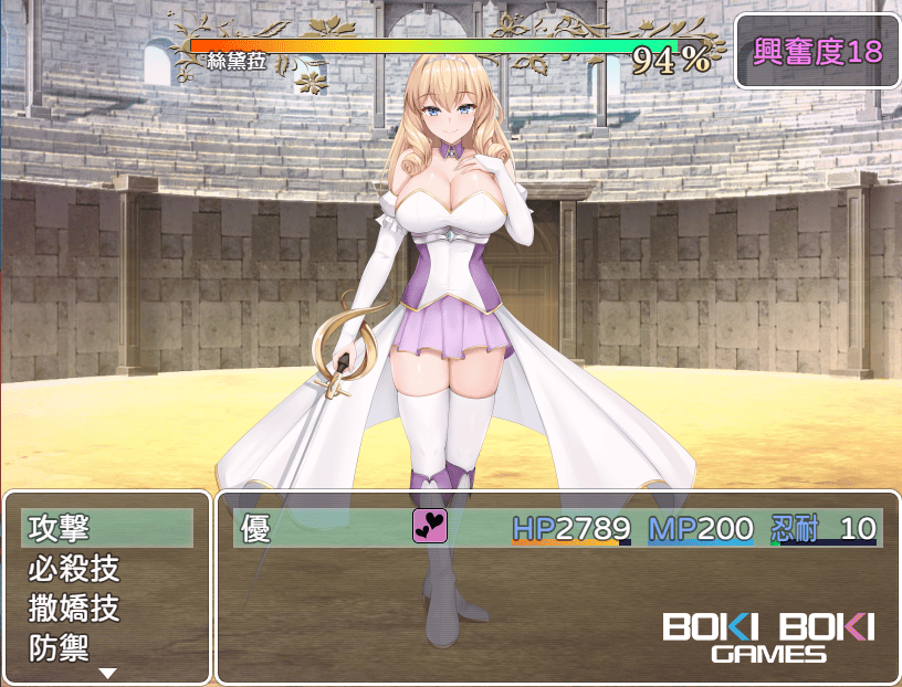 除了戰鬥中基本的 HP 和 MP 等能力值,該作還導入了「興奮值」系統,每當女角使用色誘攻擊時,皆會提升勇者的興奮值。當興奮值超過 50 時能力值與命中率下降,而一旦達到 100 則戰鬥就會直接以敗北收場。所以如何靈用各式技能平衡 HP、MP 與興奮度,將會是每場瑟瑟對決的致勝關鍵,也讓玩家體驗快感與危機並存的刺激戰鬥。
