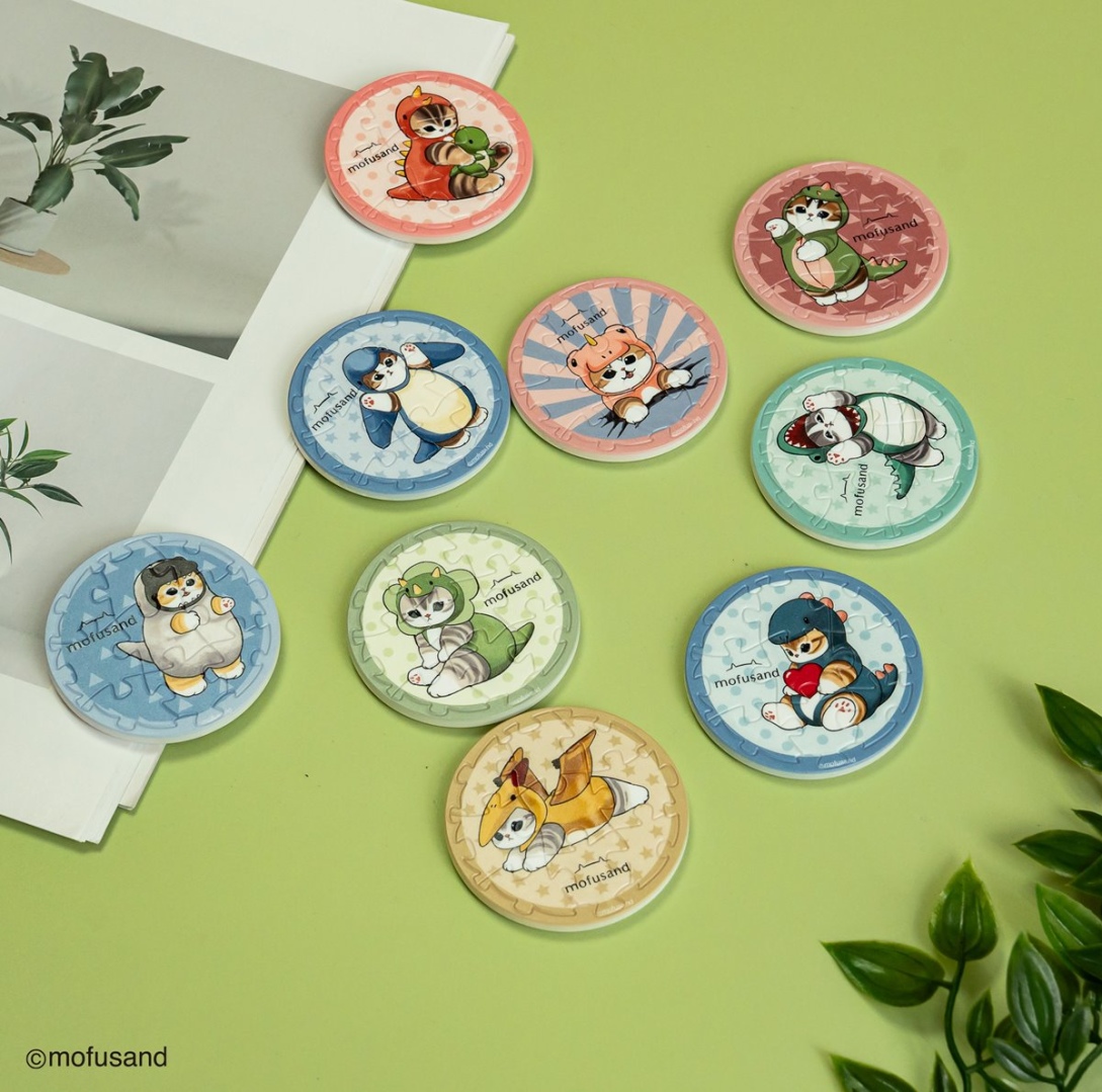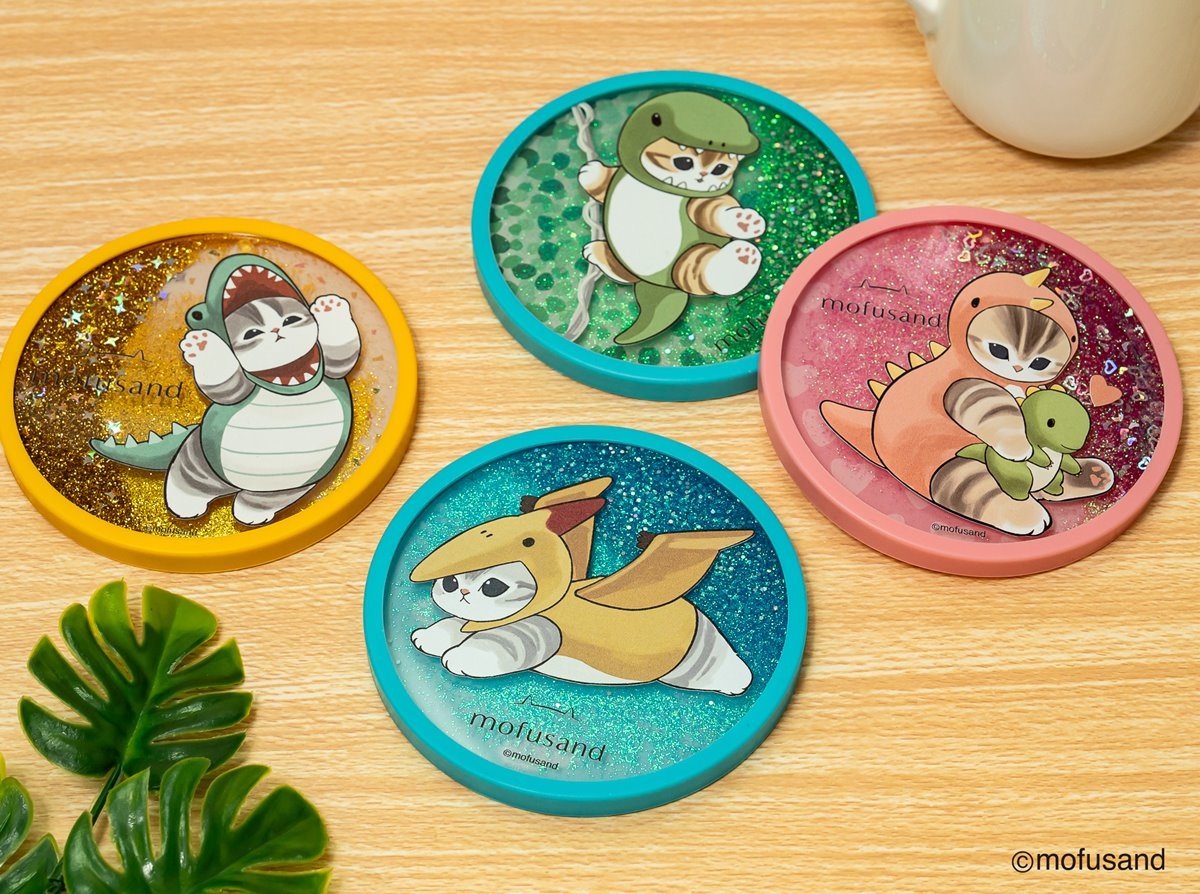 無聊想打發時間嗎?有著舉手、飛翔或萌坐等九種動作的恐龍喵化身「拼圖徽章」,讓你拼出屬於自己的小龍喵。水杯下面別忘記墊上抱著娃娃或化身泰山的恐龍喵等四款超美「流沙杯墊」,看了飲料都甜上一層樓呢!