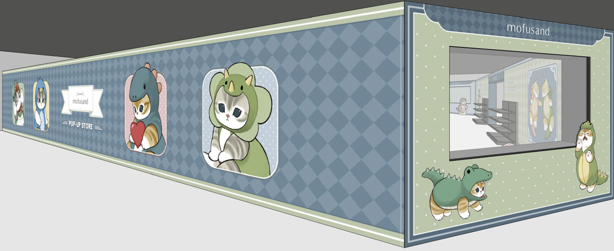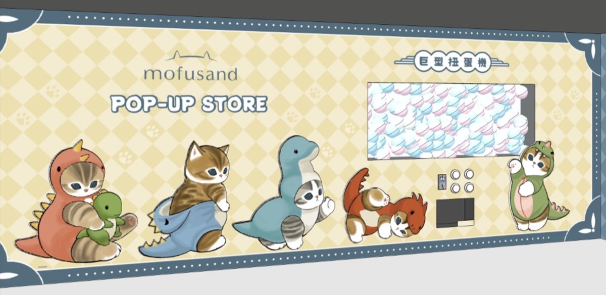 快閃店推出十大拍照打卡點,打算讓恐龍喵佔滿各位手機記憶體,入口處八隻化身恐龍喵的「八喵臨門」,有抱著小龍及爬上鐵塔的恐龍喵們向你招手,走進店內馬上看到「打氣三龍喵」幫你加油,讓你在超好玩的「巨型扭蛋機」旗開得勝!荷包注意啦!近百款全新恐龍喵系列周邊,這麼可愛怎麼可以不帶回家啊!