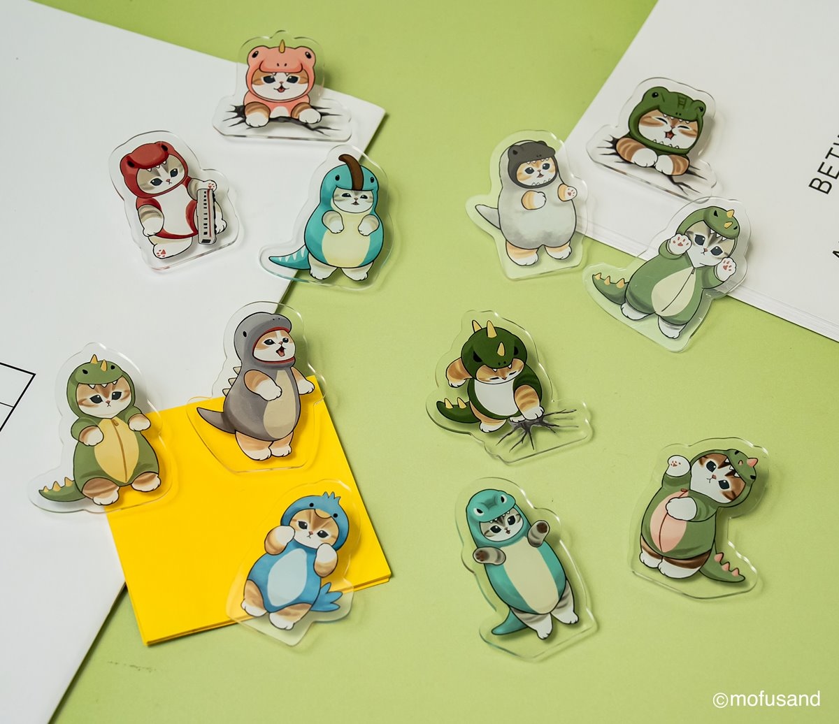 午休買飲品卻找不到零錢嗎?拿著三角龍或暴龍的可愛恐龍喵「零錢包」就不用大海撈幣了,記得把飲料放在四款超萌「陶瓷杯墊」上,讓各種恐龍喵來幫你把桌面吸乾乾。桌上一團亂怎麼辦?就交給破土而出或小暴龍裝三連拍等四組恐龍喵「造型夾子」來好好幫你整理桌面吧!上班搭車不可少的「證件卡套」也出了八款不同的恐龍喵特寫,小心陷入選擇困難喔!還在拿廢紙墊滑鼠嗎?該把翹屁屁或兩隻打滾等四種耍萌的恐龍喵「滑鼠墊」帶去公司好好陪你上班了!
