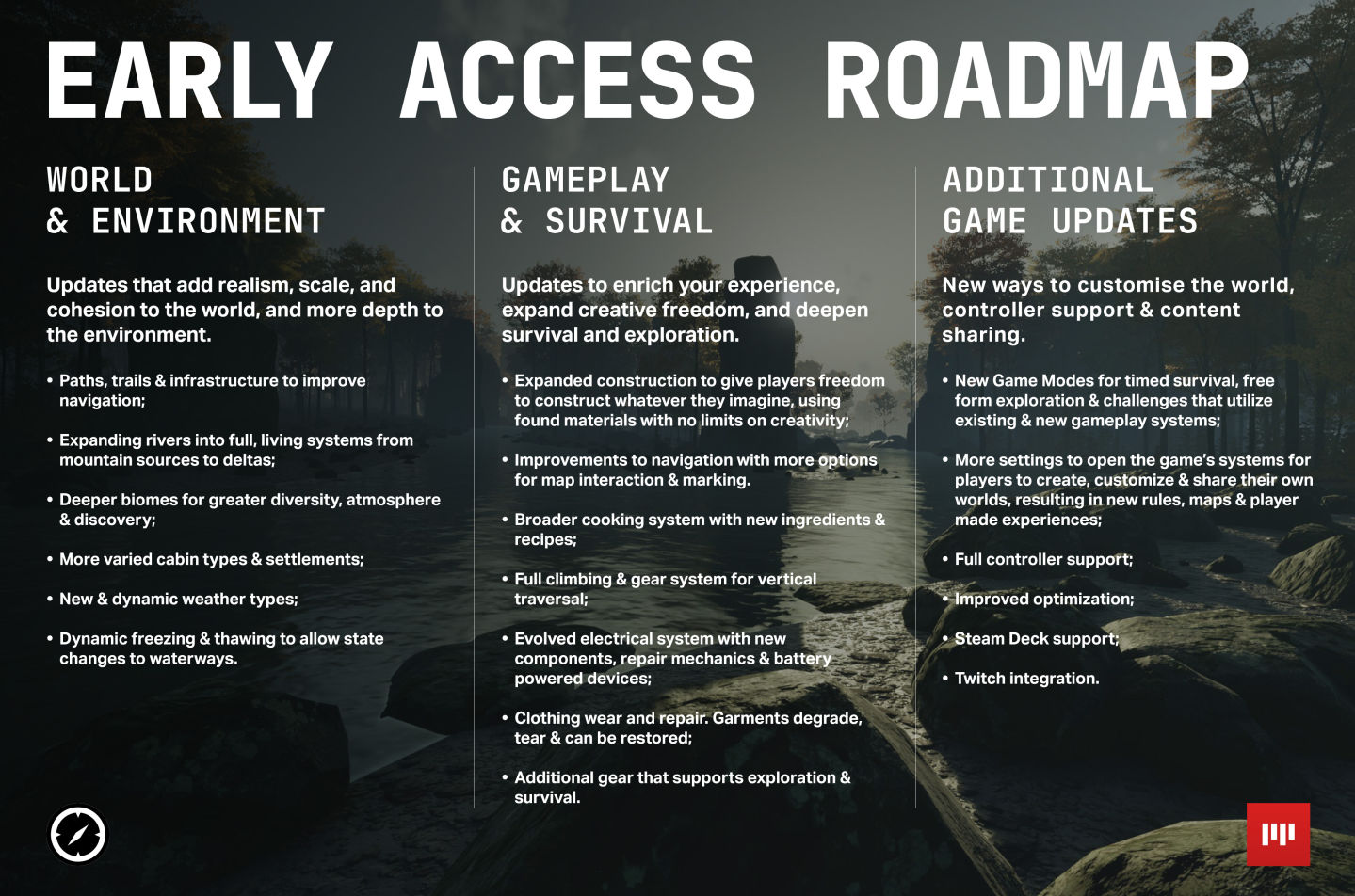 官方也預告,隨著搶先體驗版推出,今後也將會實裝更多內容,例如像是更複雜的生態群系,或是更加美麗的視覺畫面優化,以即可以讓玩家使用的建築跟料理,並將會支援搖桿手把的操作,還有 Twitch 的整合等等。喜歡本作的玩家們,快趁現在趕快來遊玩體驗。
