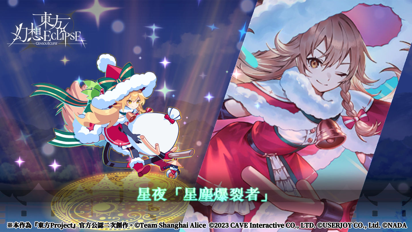 為替聖誕活動「下半」預熱,「紅白的魔法師」霧雨魔理沙將於 12 月 3 日在期間限定卡池登場,並將在後續活動中大放異彩!自 12 月 4 日起登入活動,還可獲得「魔理沙(聖誕)」祈願券及祈願券,共計 20 抽獎勵!別錯過入手聖誕衣裝魔理沙的好機會,快與紅白的魔法師一同踏上幻想鄉的冬日冒險吧!