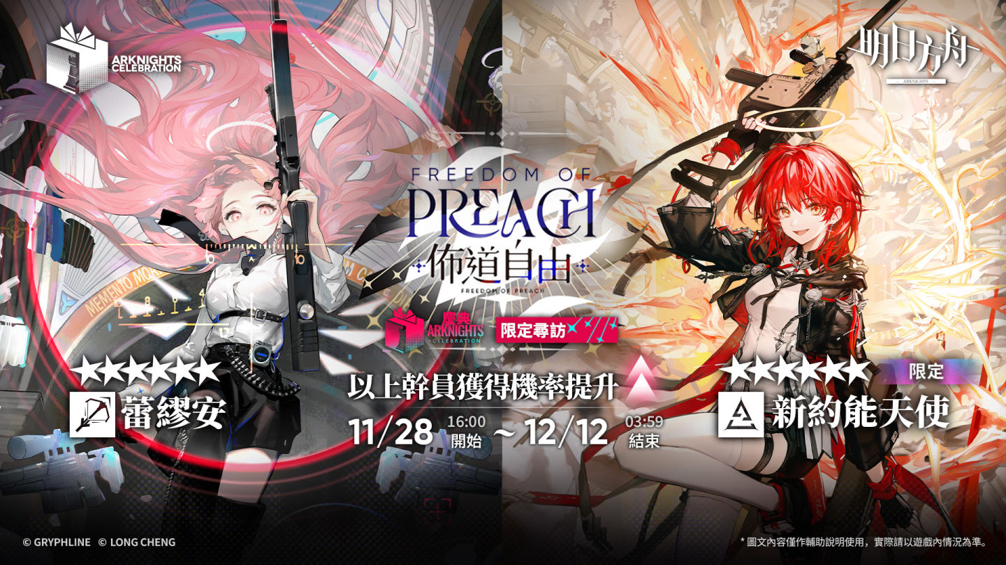 活動期間「限定尋訪.慶典 - 佈道自由」尋訪開啟,該尋訪中以下幹員出現率上升: