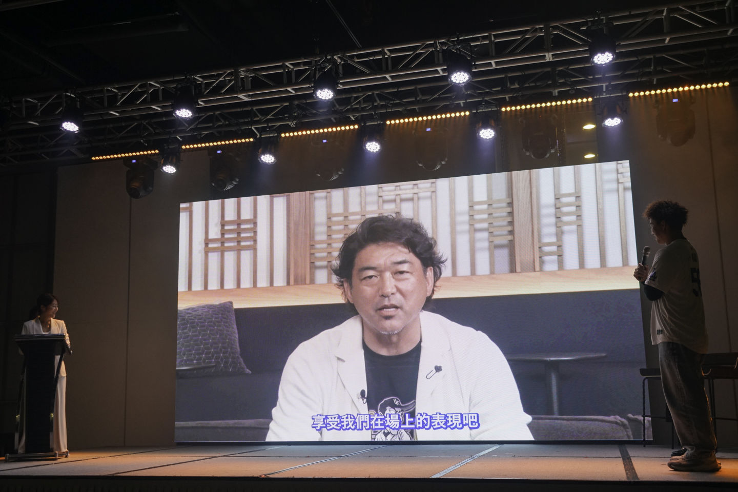 活動播放驚喜影片,前道奇隊友、現任橫濱 DeNA 投手教練齋藤隆的透過影片問候,郭泓志難掩驚訝。齋藤隆不僅熱情地向台灣玩家問好,更回憶起當年與小郭犀利滑球的魅力,他希望玩家能將小郭作為終結者使用,享受他們在球場上的精采表現。