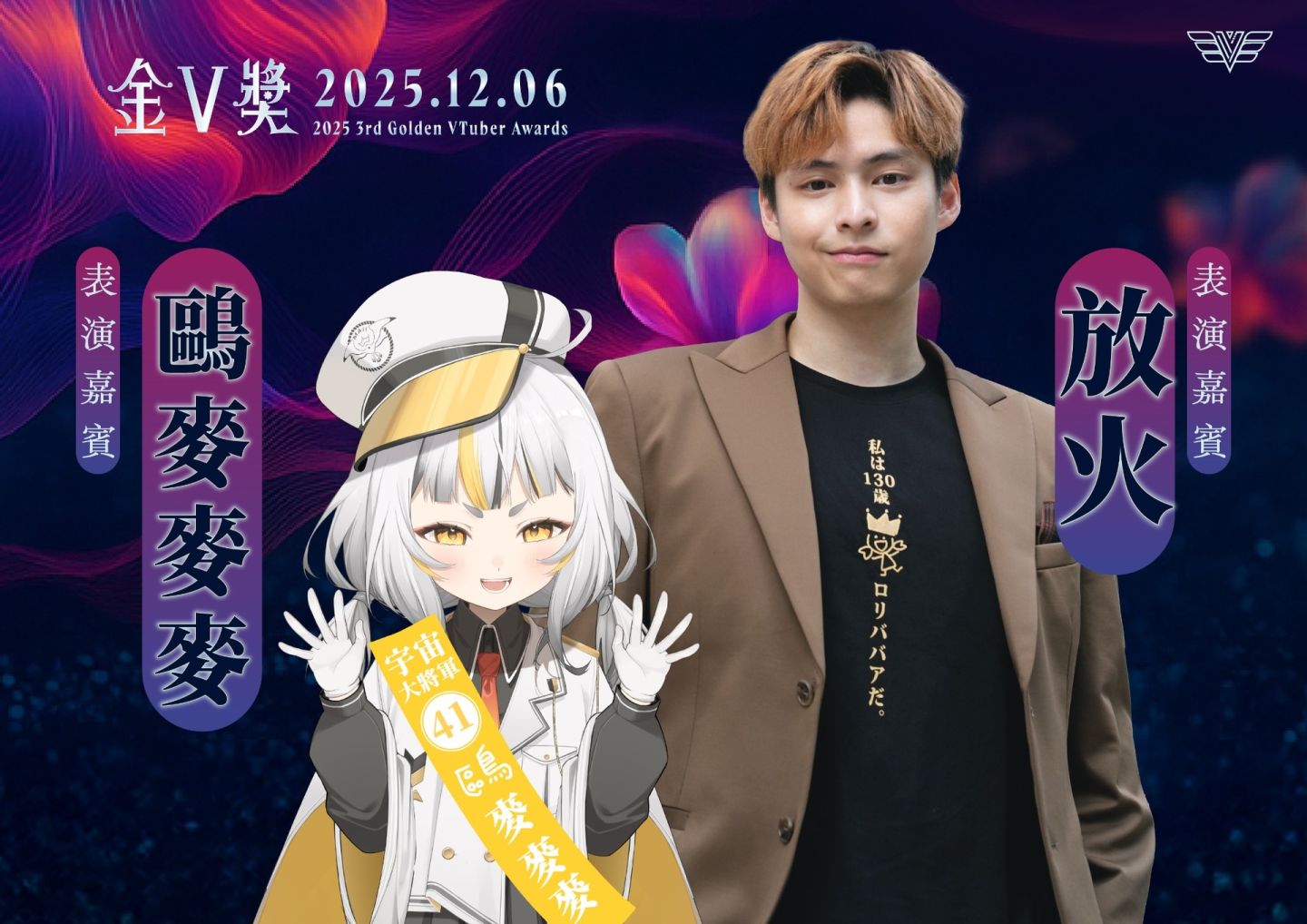 由放火打造的 VTuber 女兒鷗麥麥麥在 2024 年底出道後即話題不斷,兩人在直播和影片上的互動也讓觀眾印象深刻,此次金V獎為兩人首次的公開歌舞演出,共同翻玩放火千萬點擊名曲〈ㄅㄆㄇ注音歌〉,發揮「傳承」的精神,錄音過程中鷗麥麥麥的有趣唱和也數度讓放火笑場,展現父女間的好感情。