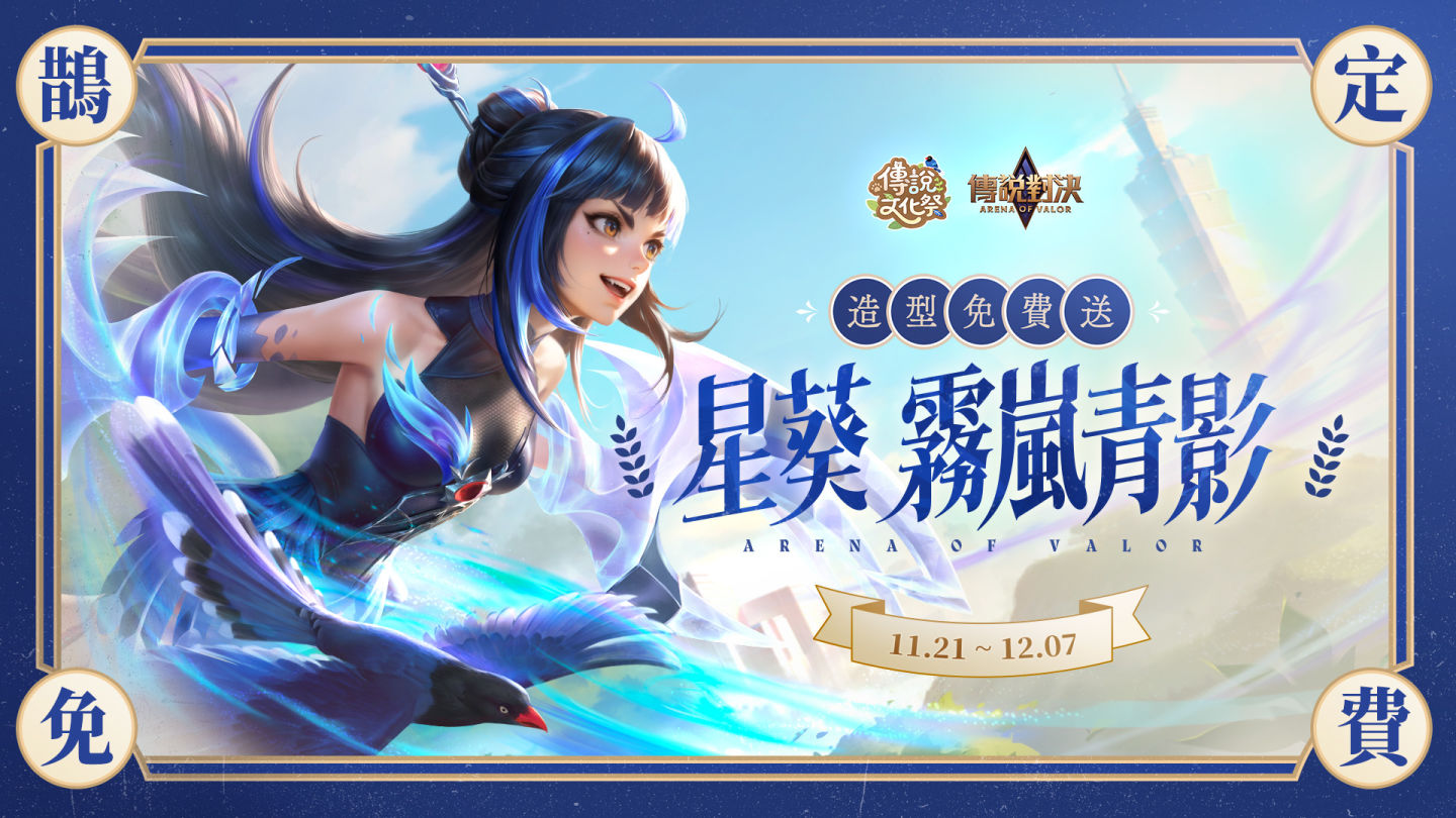 呼應文化祭的「生態守護」精神,《Garena 傳說對決》同步推出全新特效造型「星葵 霧嵐青影」。此造型為 2024 年玩家造型設計大賽冠軍作品,該活動以玩家共創為核心,邀請大眾一起參與角色外觀發想,而今年星葵的新造型也象徵著社群共創精神的實現。