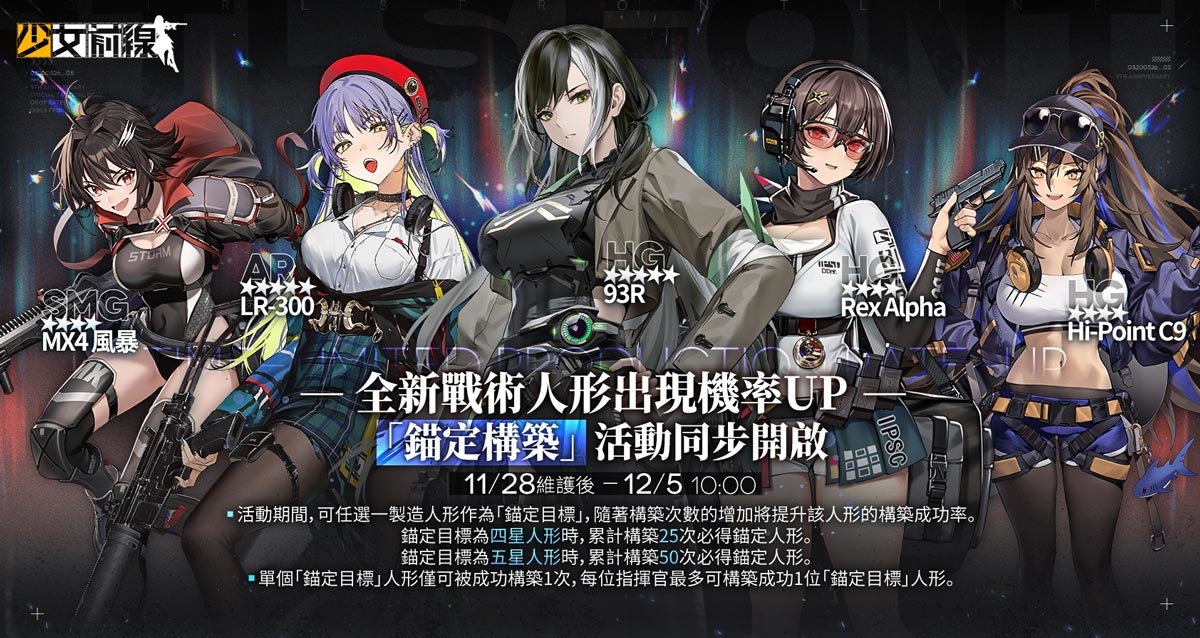 五位全新戰術人形加入戰局,製造機率 UP!「錨定構築」同步開啟