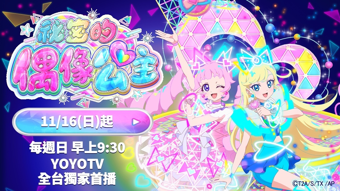 《祕密的偶像公主》於每周日早上 9 點 30 分於 YOYO TV 獨家播放。故事描述一起進入私立樂園學園就讀的主角青空陽葵和星川美月兩位好友間的故事。怕生又容易緊張的陽葵將要以偶像公主的身分出道,因此不小心有了連對好友美月都不能說的「祕密」。然而,美月似乎也懷抱著某個「祕密」。動畫中身懷祕密的陽葵和美月,兩位偶像公主的故事即將揭開序幕!