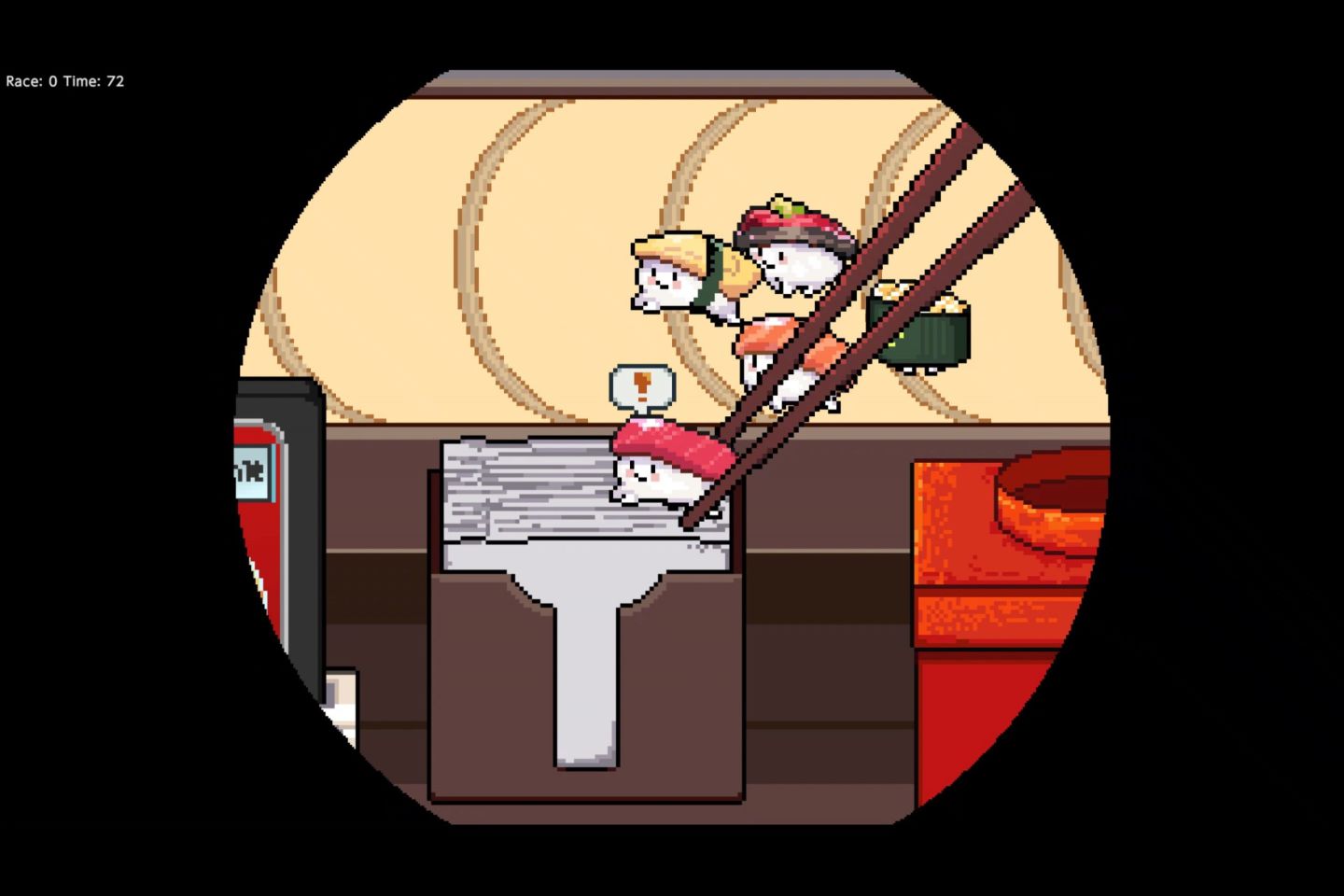 《Wabisabi SushiDerby》是壽司×養成×競速遊戲。玩家需要為在賽道上疾馳的壽司加油助威,避開顧客的筷子,奪取勝利,成為一流壽司師傅。