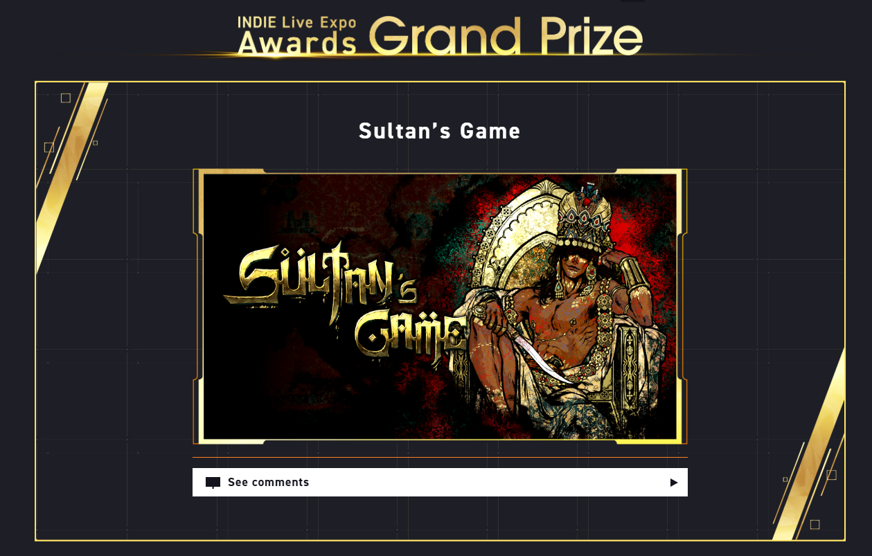 《蘇丹的遊戲》在全球性遊戲盛典「INDIE Live Expo Awards 2025」中脫穎而出,一舉斬獲「年度遊戲大獎」。遊戲製作人遠古之風在獲獎感言中真誠地表示:「感謝全球玩家的熱情與支持,讓原本孤獨的創作之路,成為了一段愉快的幸福時光。」