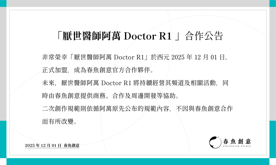 2025 年 12 月 1 日,接近初配信三週年的這天,阿萬宣布正式加入春魚創意,迎來新的創作合作階段。