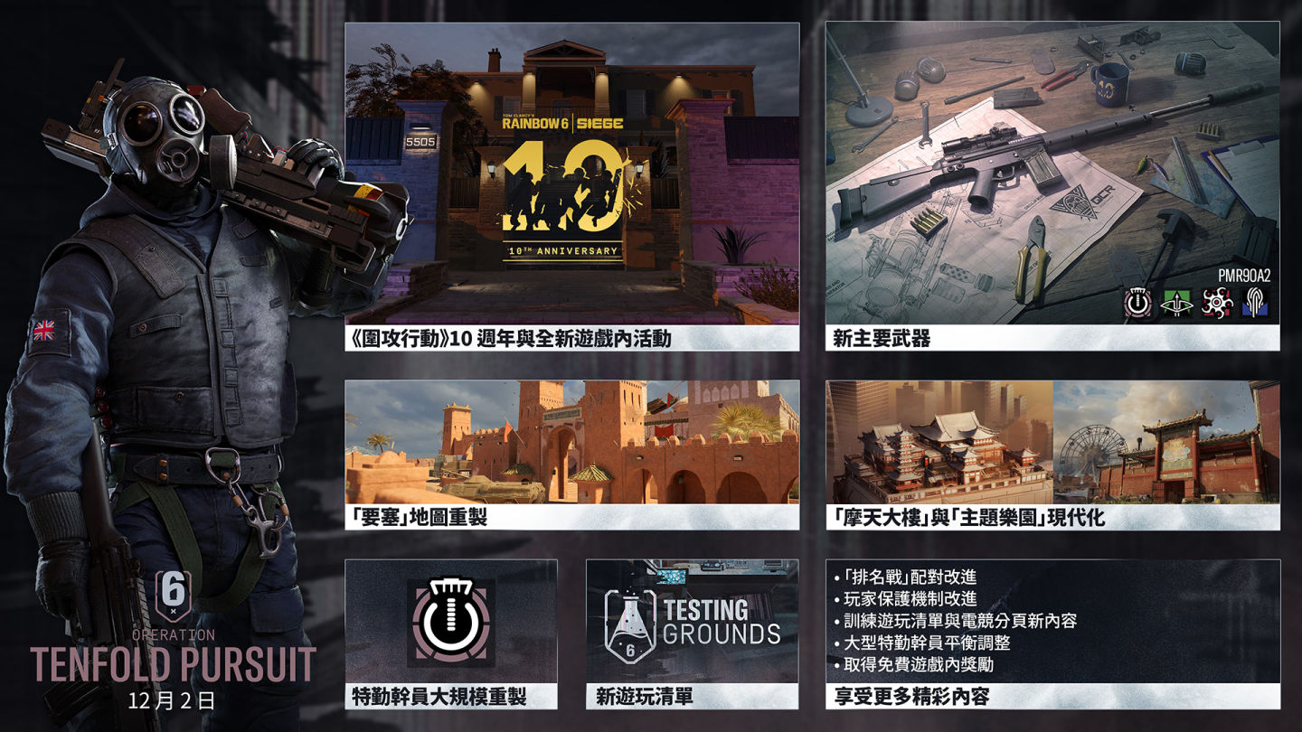 《虹彩六號:圍攻行動》是一款免費遊玩的第一人稱戰術射擊遊戲,最新一季改版「十倍追擊行動」現已上線。