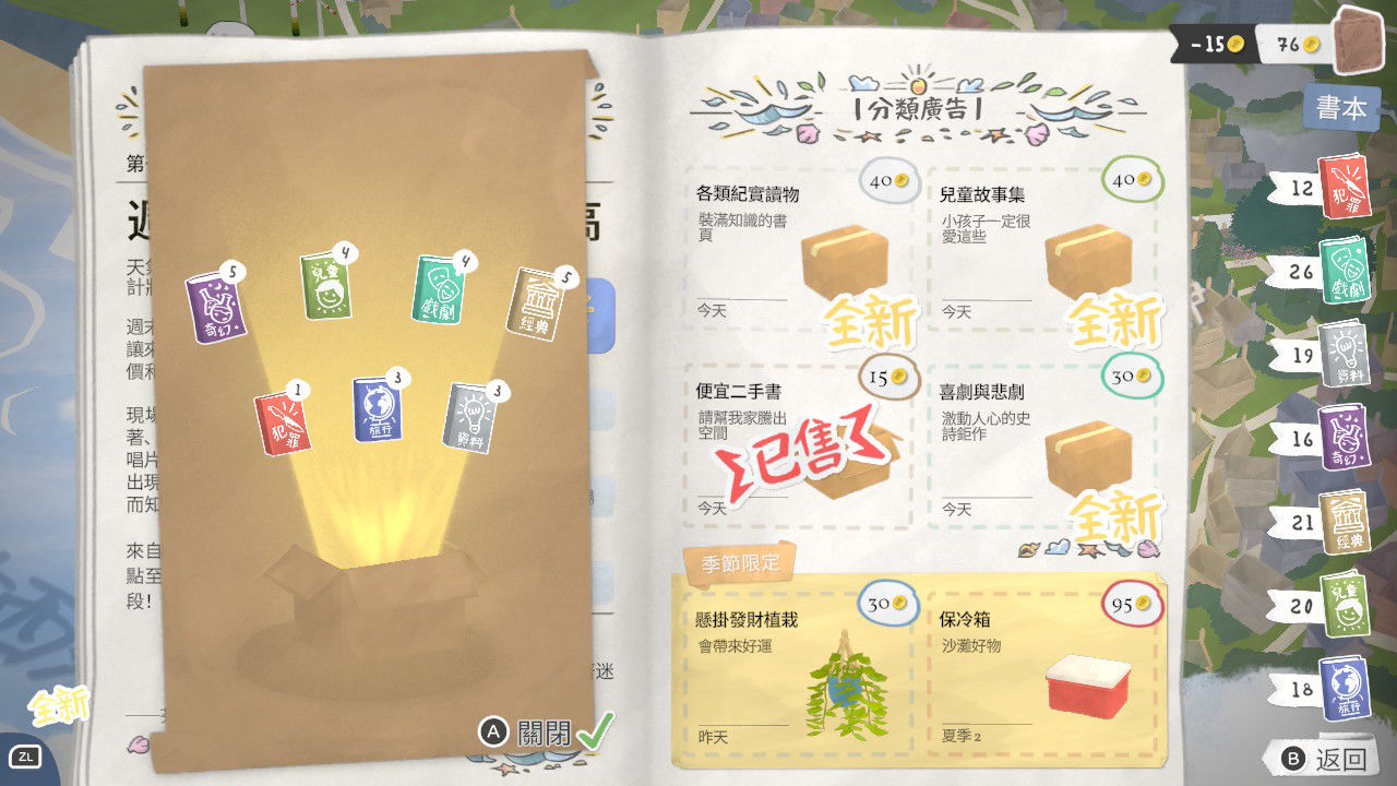 裝點書店營造獨特的閱讀氛圍、向客人推薦書籍、結識友善的居民、參加當地的節日慶典——用承載回憶的藏品填滿你的收藏冊,開啟你嶄新的人生篇章。