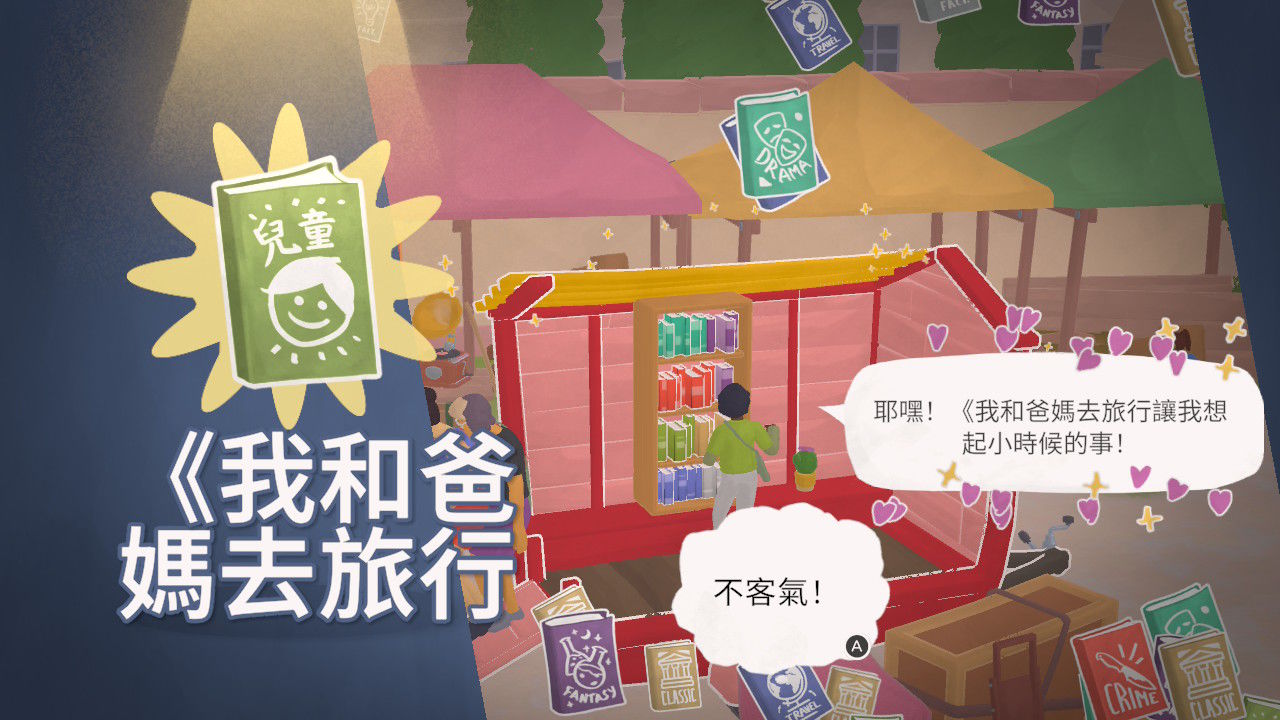 《Tiny Bookshop 小小書店》是一款以劇情驅動的模擬經營遊戲。你將告別城市中喧囂繁雜,在風景如畫的書山鎮,開設一家屬於自己的移動書店。