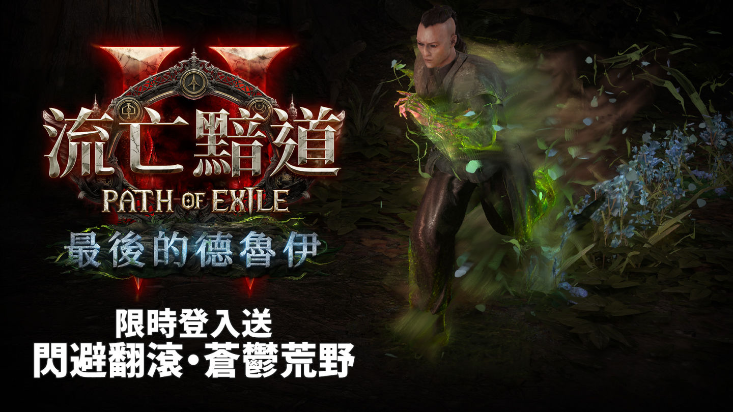 官方宣布將與全球同步,開放限時免費體驗活動,台灣時間 12 月 13 日上午 8 點(以正式改版開服時間為準)至 12 月 16 日凌晨 3 點期間,只要擁有《流亡黯道》繁體中文版帳號,或新註冊《流亡黯道2》繁體中文版帳號的玩家,皆可免費加入體驗當前《流亡黯道2》繁體中文版搶先體驗的所有內容,包括全新版本《流亡黯道2:最後的德魯伊》。