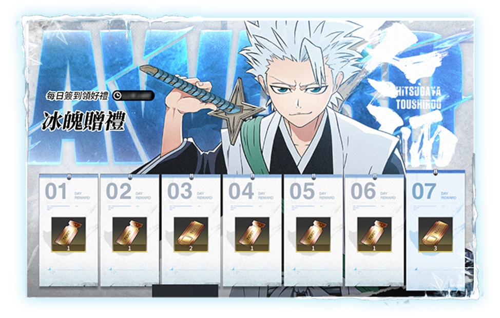 玩家可以在每日簽到中獲得相關獎勵,讓不管是否抽取日番谷冬獅郎都能獲得一定的資源。