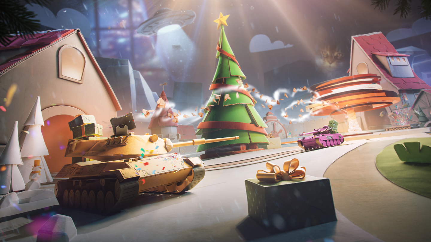 2025 年 12 月 5 日至 2026 年 1 月 12 日,車庫將再次變身為節日村鎮,當中有班尼迪克康柏拜區的總部。白日裡,村鎮展現溫馨的雪景,夜幕降臨時,天空則被童話般的節日照明、燈飾與煙火點亮,營造出迷人的節日氛圍。玩家一旦登入遊戲後,就會立即獲得首份節慶禮物:瑞典 III 階輕型戰車 Strv M/31。此外,節日村鎮中也設有降臨曆,玩家只要每天登入《戰車世界》並打開新方格,即可解鎖驚喜跟收集專屬獎勵!