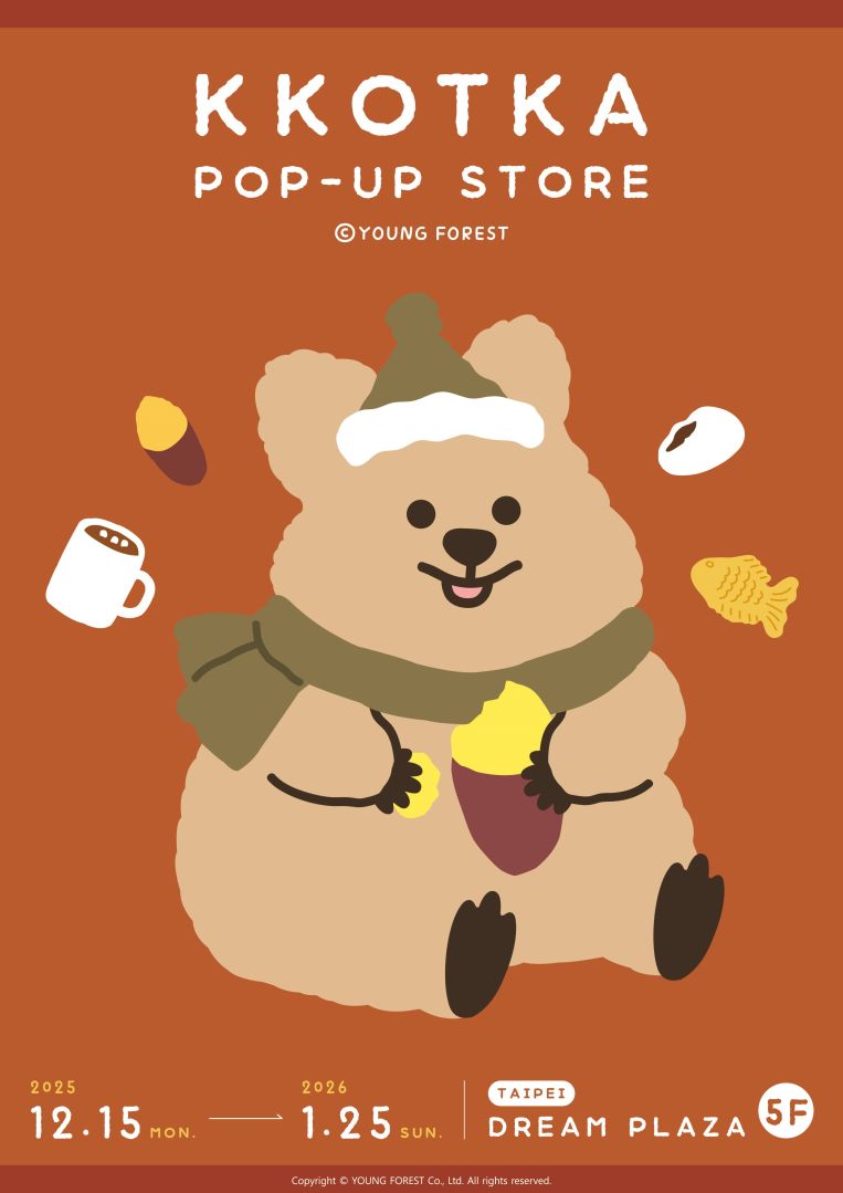首次登台的《勾卡KKOTKA快閃店》將於12/15 ~ 1/25在台北 Dream Plaza 5F 亮相。有著溫暖笑容與可愛行為勾卡KKOTKA,希望帶給大家快樂、自我關愛與療癒氛圍。快閃店推出三大打卡點,首推高達 200 公分的充氣「愛心勾卡KKOTKA」,抱著大大紅心的勾卡KKOTKA在門口迎接你,而吃著關東煮、推購物車等可愛模樣亮相的「勾卡KKOTKA吃播秀」及嘴饞的「蕃薯勾卡KKOTKA」,更是把勾卡KKOTKA愛吃零食的個性表露無遺唷!