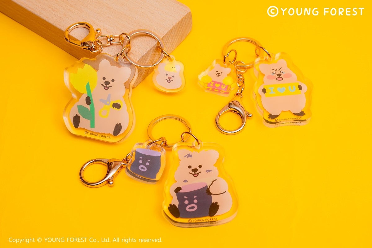 以純白版面搭配多組勾卡KKOTKA日常插圖的六款「帆布包」,容量實用、配色清爽,絕對是功能型禮物首選。最後細節控不能錯過的「壓克力鑰匙圈」共有四款,勾卡KKOTKA分別拿著鬱金香、氣球與禮物等的樣子既調皮又暖心,會讓人立刻掛上包包、完全不放回盒子裡的那種受歡迎度,抽到保證全場羨慕!