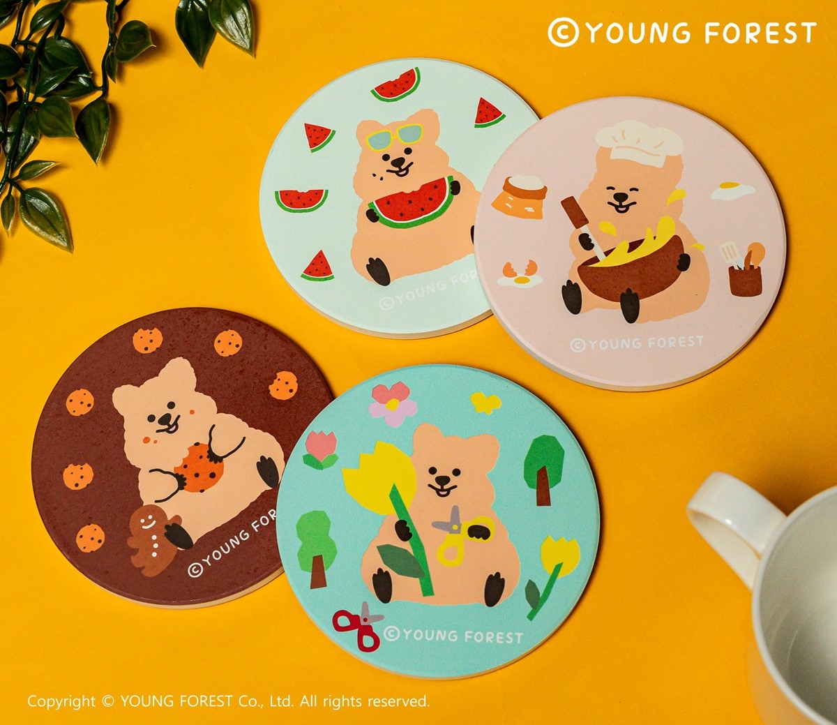 只要給餅乾,馬上就能變成好朋友的勾卡KKOTKA最喜歡吃零食,四款拿著甜甜圈、彈著吉他及吃著西瓜等超可愛「陶土杯墊」,看著勾卡KKOTKA吃也開心!上班也要保持最佳狀態,用抱著毛線球或開心洗澡等四款「隨身鏡子(大)」補妝絕對會被同事問爆。