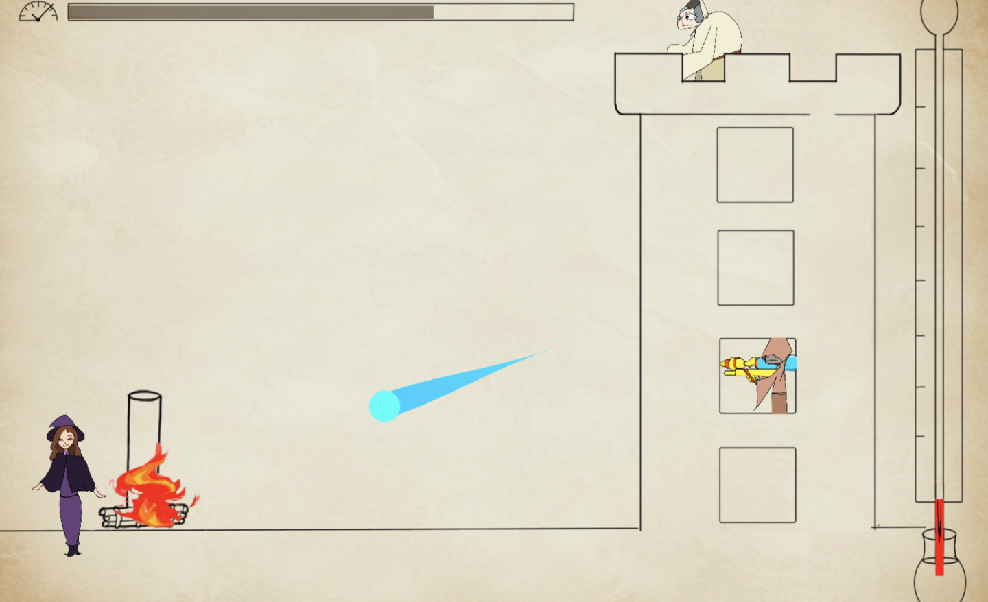 一款節奏快速的三分鐘益智射擊遊戲,遊戲設定於獵巫迫害的黑暗中世紀,女巫不再逃亡,而是將火刑架上的烈焰化為反擊的力量,玩家化身憤怒女巫,透過點擊與彈射操作將自身化為火球,攻擊躲藏在城堡中的修士,展開一場由憤怒點燃的反抗行動。每次命中都會提升城堡溫度,只要在限時內推升至燃點並焚毀城堡即可獲勝,而修士則會以水槍反擊,考驗玩家即時反應與角度掌控。