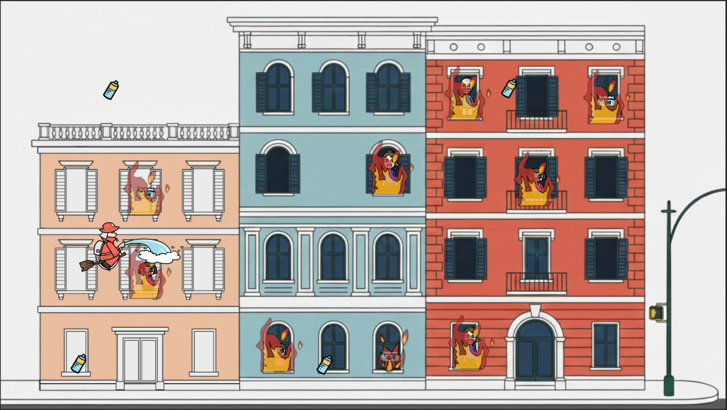 《Broom Patrol!!》是一款以女巫形象反轉為核心概念的動作互動遊戲,女巫既然燒不起來,那就代表他防火!既然防火,那可以去救火!玩家將操控化身為「救火隊」的女巫,在各種突發火災現場中進行滅火行動。遊戲採用 WASD 鍵移動角色,並以滑鼠左鍵進行澆水操作,透過即時反應與操作,完成一場場緊張刺激的救援任務。作品以輕快的節奏與直覺式操作,呈現女巫從被追捕者轉為守護者的趣味反轉設定。