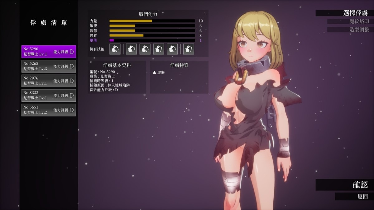 被俘獲的少女不計其數,你必須謹慎挑選參與試煉的挑戰者,找出適合自己的戰鬥方式!