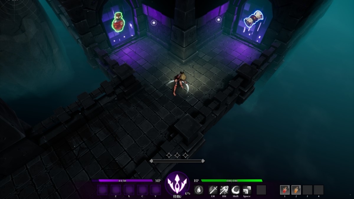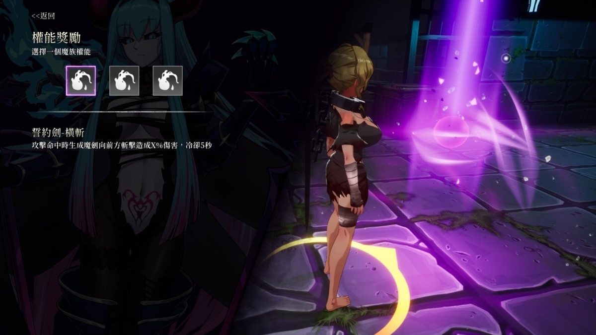 試煉結束時,玩家視角將切換為魔族視角,俘虜的表現會轉換為魔族的研究點數,研究點數可以在魔王城內各項設施中進行購買或升級,擴展更多試煉的玩法與內容。