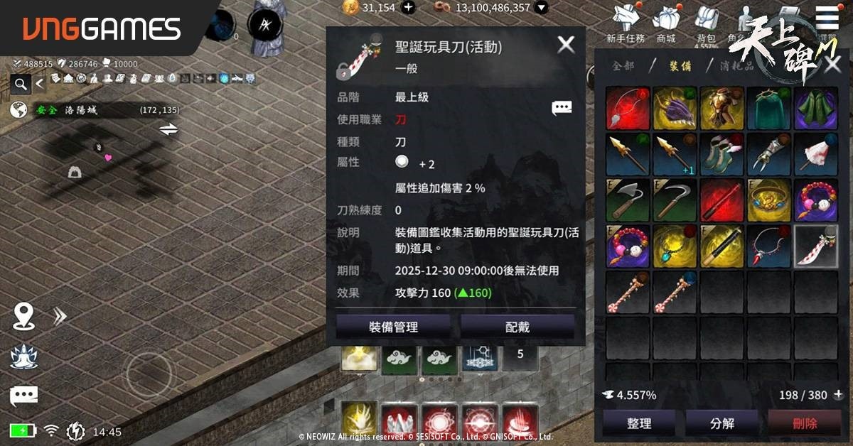 由 VNGGames 維技遊戲代理的韓國武俠 MMORPG《天上碑M》於今(17)日推出 2025 年最後一波重大版本更新。
