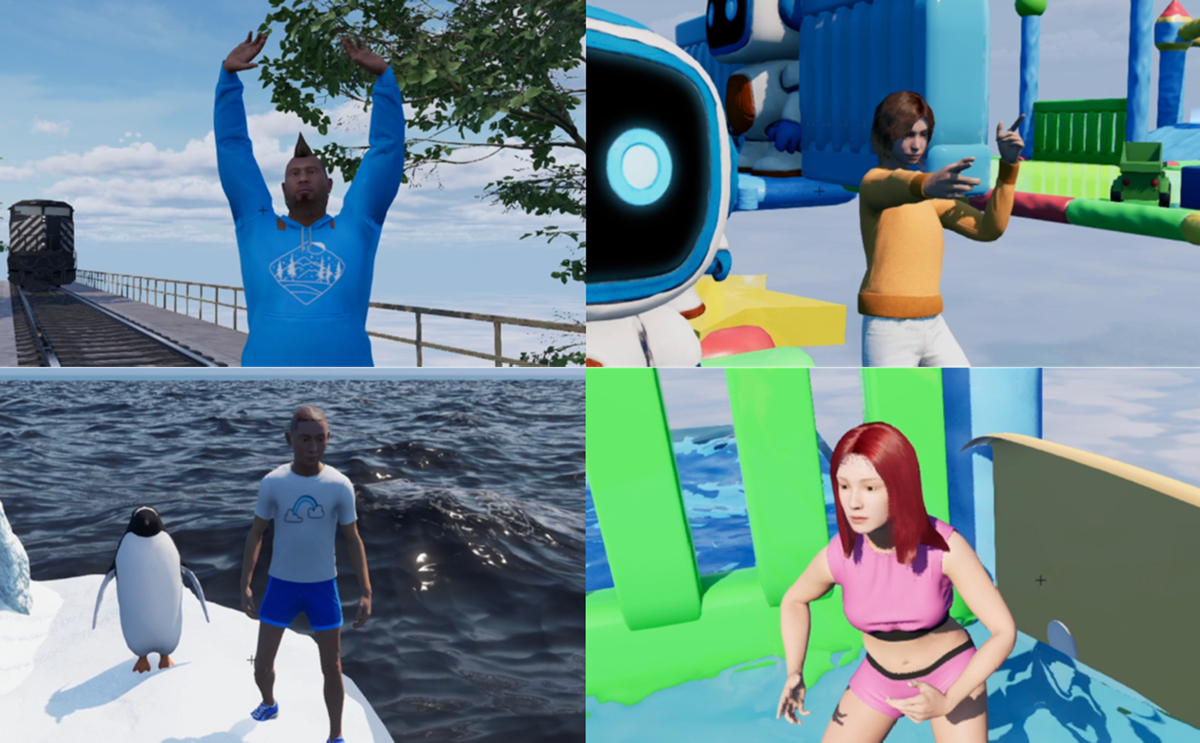•角色選擇:玩家可自由選擇四位角色,搭配專屬手勢表情,加深互動樂趣。