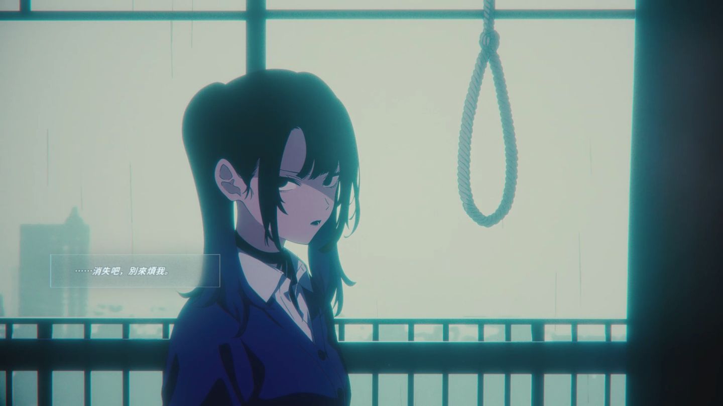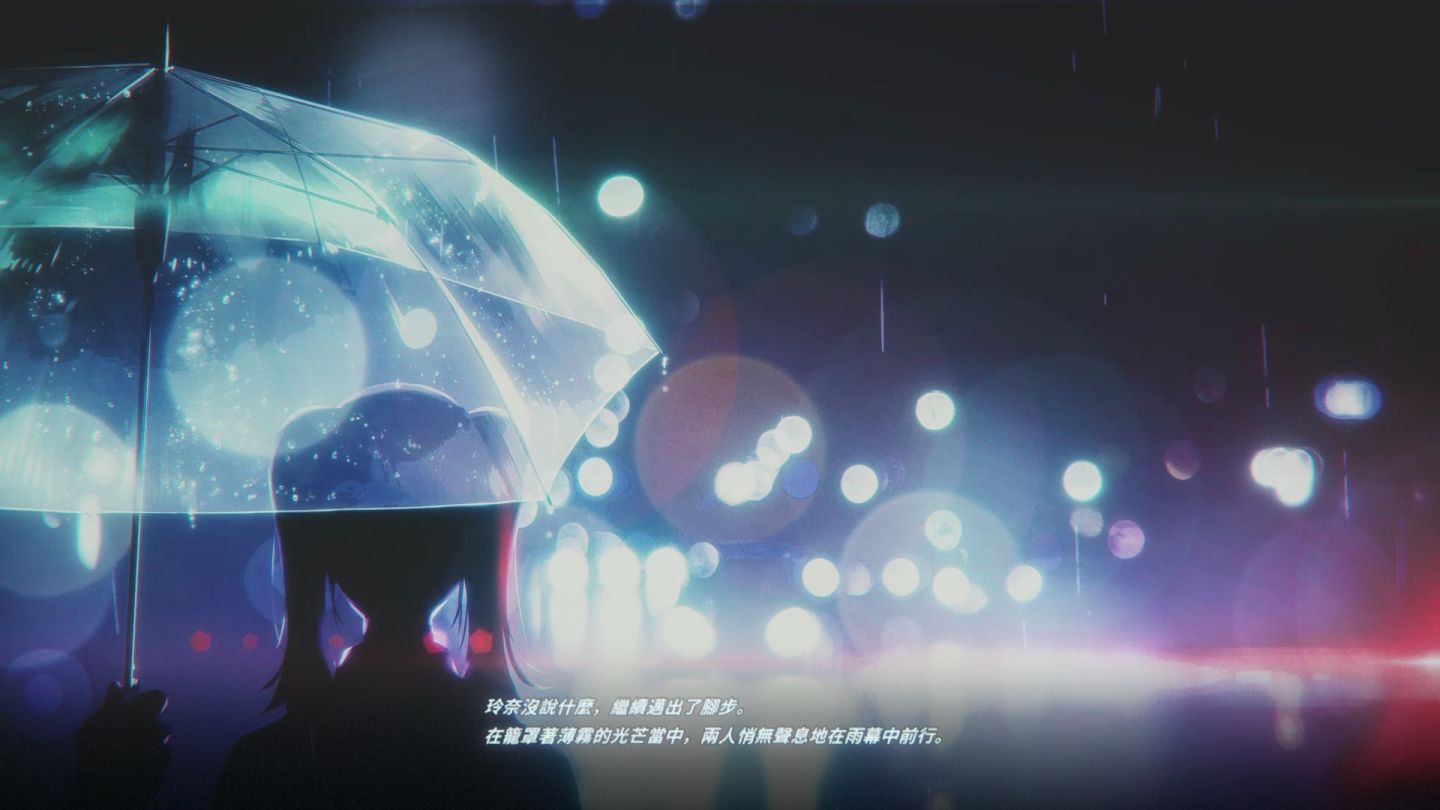 Shoon T:這是刻意的。我們想描寫的並不是「世界規模的終末」,而是「世界可能會結束」這樣的預感,如何改變一個小小房間裡的空氣(日常)。本作中的「世界末日」並非華麗的毀滅,而是悄悄混入日常生活之中的存在。舉例來說,在試玩版中,有一個「在下雨的住宅區裡,兩人共撐一把破掉的塑膠雨傘行走」的普通場景,但其中蘊含著靜謐的末日象徵。