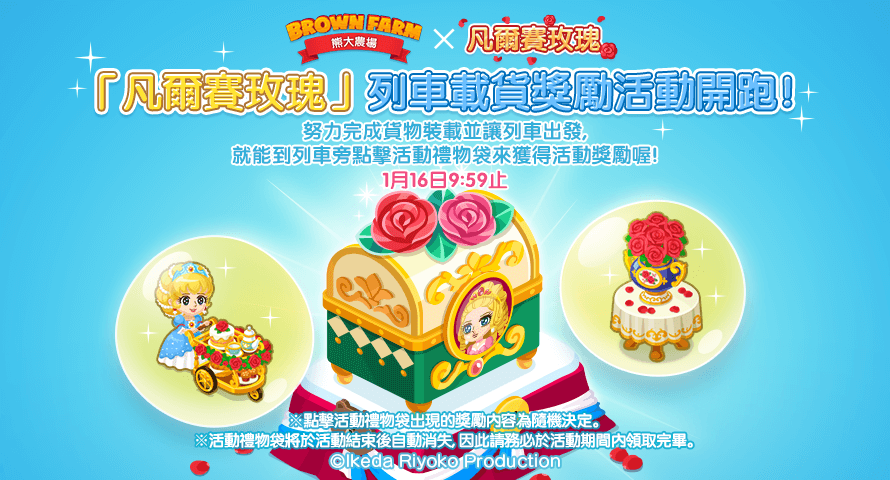 在列車旁的廣場即將出現禮物袋,完成貨物裝載並讓列車出發,點擊活動禮物袋就有機會得到「凡爾賽玫瑰」合作的限定道具!