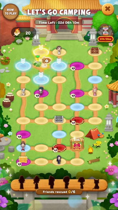 在活動中可以自己決定路徑,努力通過關卡幫助迷路的朋友,一起邁向終點的露營場吧!救出的朋友越多,可獲得的獎勵就越豪華,詳細的獲得條件,請參考遊戲內公告。