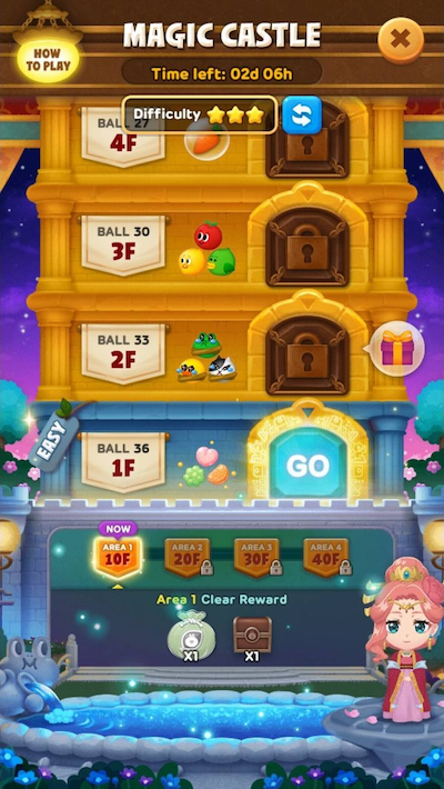 在活動期間內,從城堡的第一層開始挑戰並通過關卡即可獲得道具獎勵,每通過10個樓層還可獲得特別的道具並進入下一個區域,活動共有3個區域可進行挑戰!