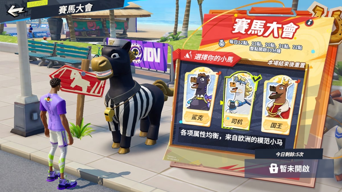 除此以外,街球廣場「賽馬大會」熱血上線,街球手可挑選看好的小馬進行最多 8 人的即時衝刺比賽,勝負就在終點線前揭曉。新增的「巡遊花車」功能則讓街球手能大聲「嗆聲」說出想說的話!亦能獲得專屬稱號,並且其他街球手在巡遊期間一起登上花車還能獲得慶典禮盒。