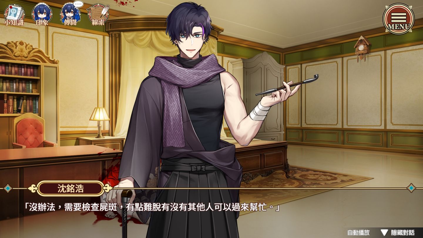 作為偵探角色,沈銘浩的聲線設定偏向成熟穩重,即使面對命案與突發狀況,仍保持冷靜與理性,呈現出與另外兩名角色明顯不同的氣質層次。