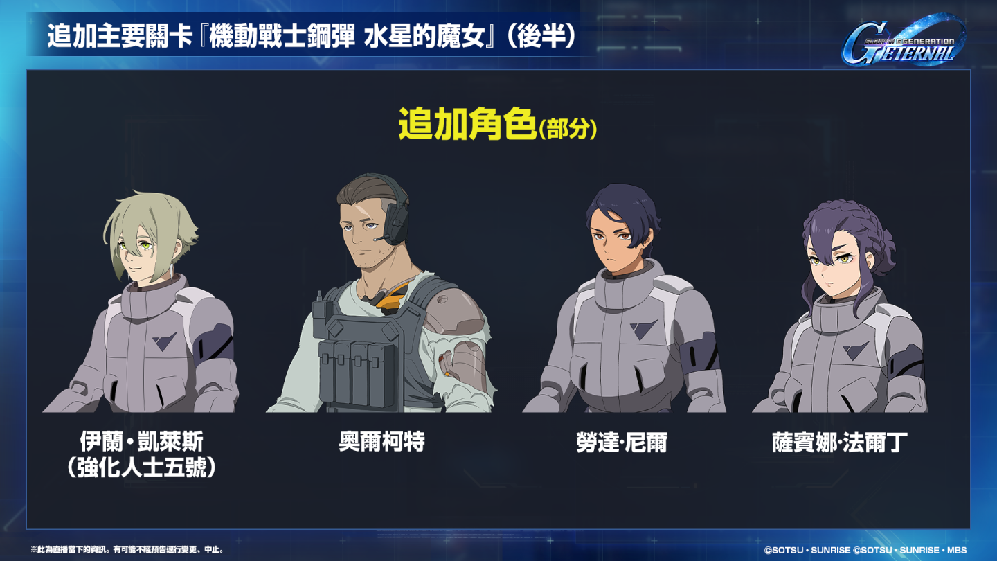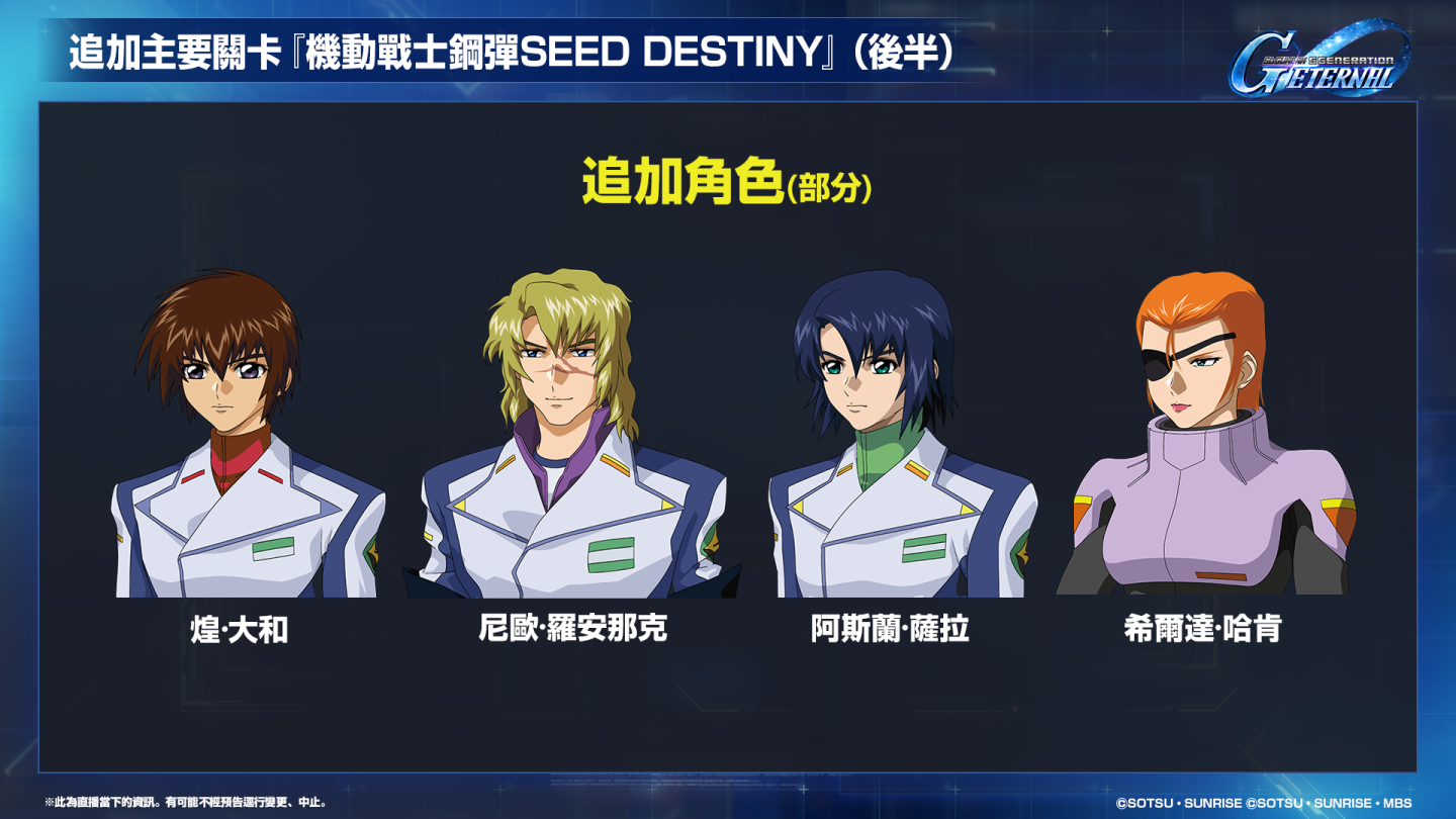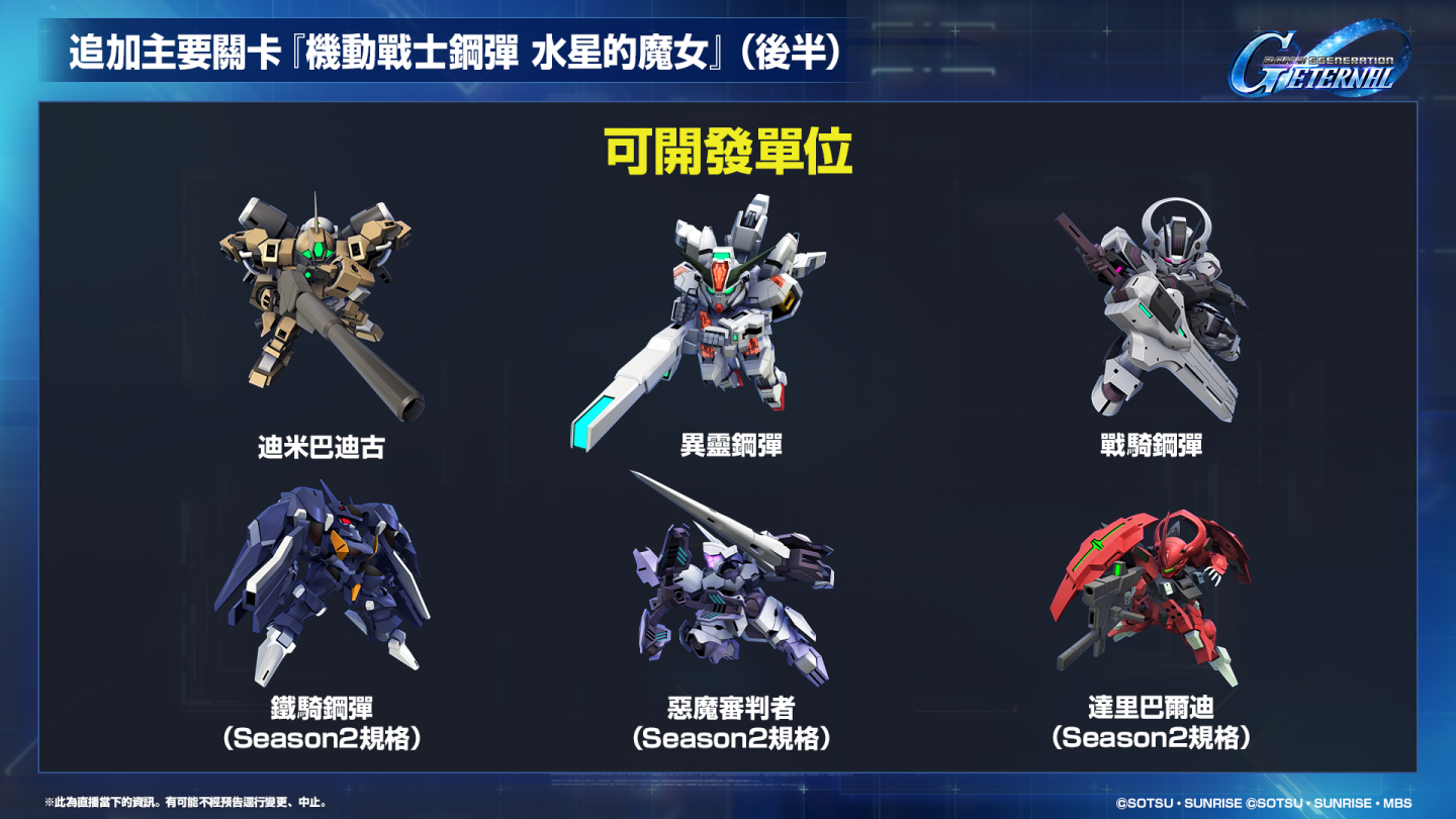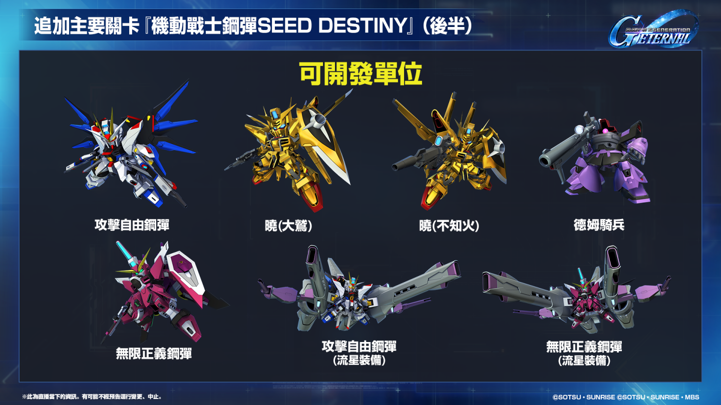 12 月 31 日將進行大規模內容更新。主要關卡將追加《機動戰士鋼彈SEED DESTINY》與《機動戰士鋼彈 水星的魔女》後半段劇情,同步開放「攻擊自由鋼彈」與「異靈鋼彈」之開發路線。精選補給方面,將限時推出 UR「異靈鋼彈(最終決戰時)(EX)」配搭角色蘇萊塔‧墨丘利,以及 UR「命運鋼彈(EX)」配搭角色真‧飛鳥。此外,UR「攻擊自由鋼彈(EX)」與角色煌‧大和將進行復刻。
