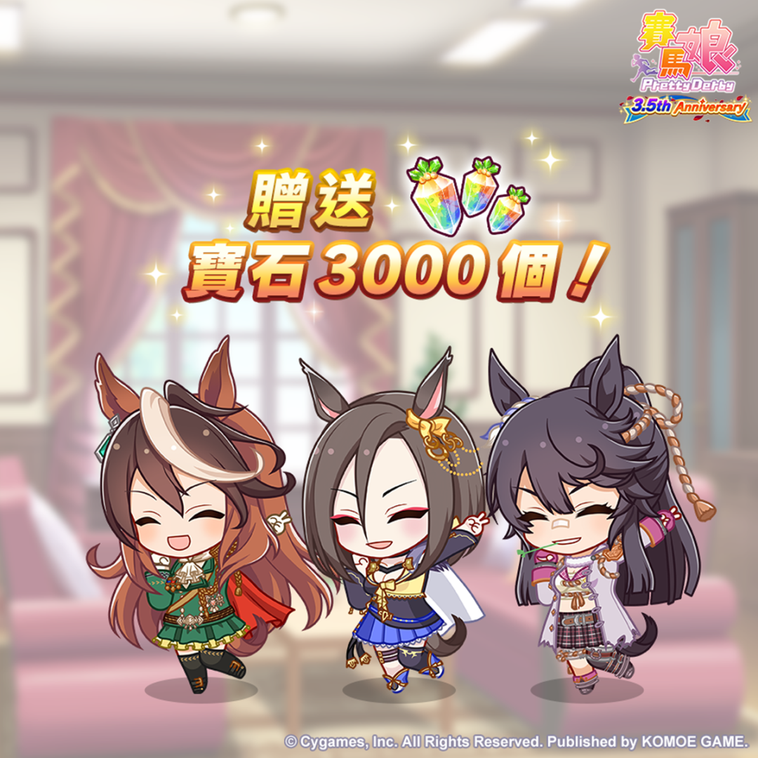 為了紀念 3.5th Anniversary,於 12 月 2 7日 12:00 贈送「寶石3000個」給各位訓練員!