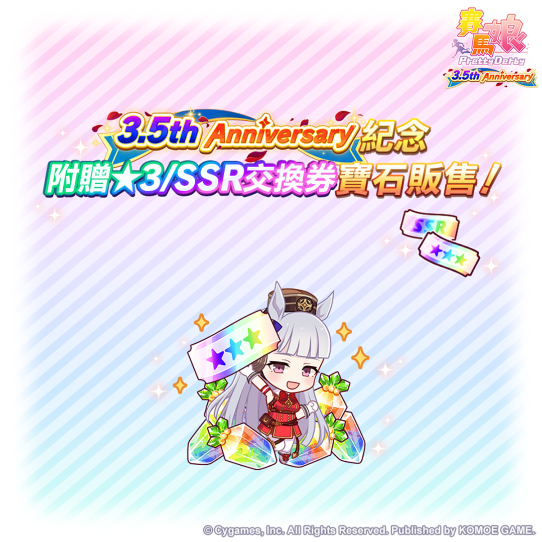 3.5th Anniv. 高級 Pretty Derby轉蛋與 3.5th Anniv. 支援卡片轉蛋舉辦